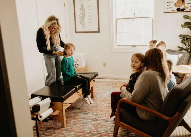 Dr Lauren adjusting a child at Well Family Chiropractic in Mequon, WI