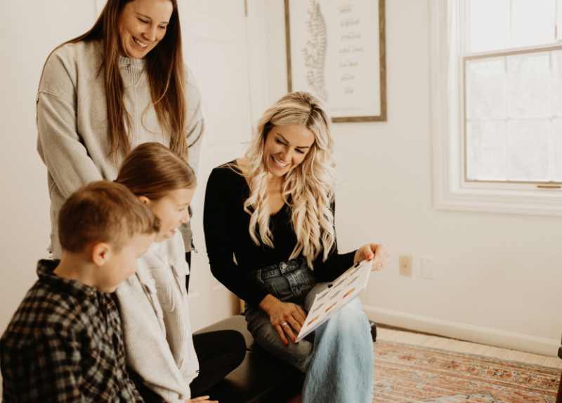 a family reviews their scans and evaluation at their follow-up appointment at Well Family Chiropractic